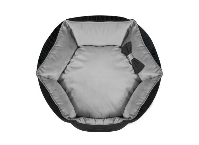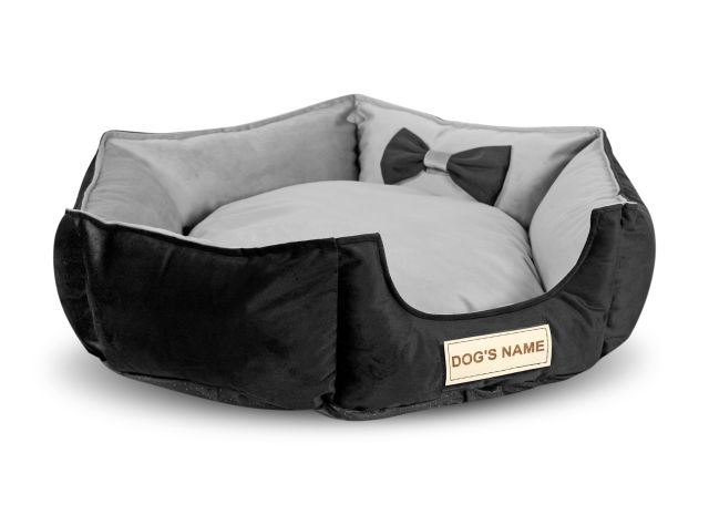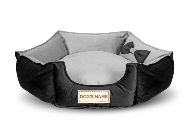 Trwałe WELUROWE legowisko dla psa, rozbieralne z antypoślizgowym spodem w kolorze szaro-czarnym, PERSONALIZOWANE imieniem pupila!