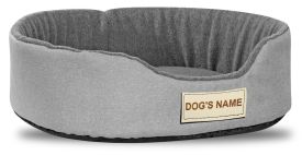 Wytrzymałe wodoodporne OWALNE legowisko dla psa w kolorze szarym, PERSONALIZOWANE imieniem pupila!