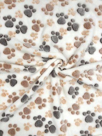 - Wykonany z miękkiego pluszu w różnorodne wzorki łapek.