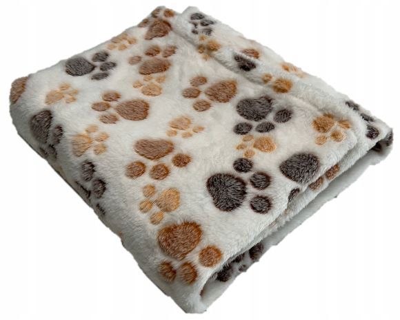 Przyjemny w dotyku, ciepły POLAROWY KOC we wzór kolorowych łapek, ZADOWOLENIE pupila gwarantowane!