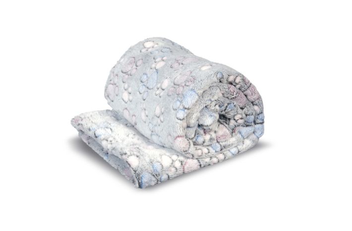 Przyjemny w dotyku, ciepły POLAROWY KOC we wzór kolorowych łapek, ZADOWOLENIE pupila gwarantowane!