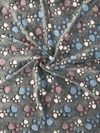 - Wykonany z miękkiego pluszu w różnorodne wzorki łapek.