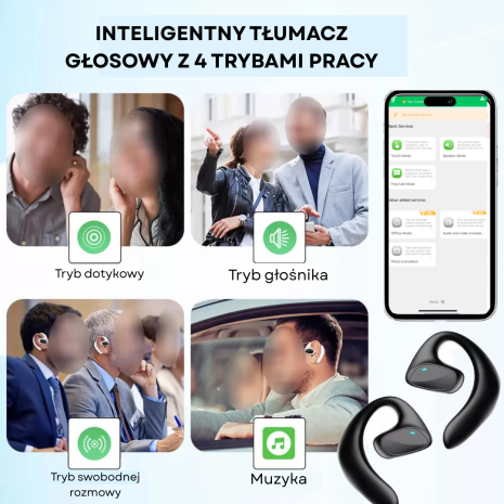 2 × Słuchawki tłumaczące Bluetooth (lewa i prawa)