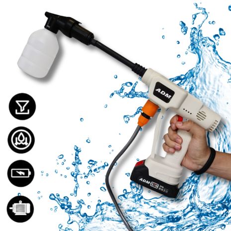 Bezprzewodowa mini myjka ciśnieniowa ADM ma zintegrowaną konstrukcję o wysokim ciśnieniu i elastycznym zastosowaniu. Urządzenie jest wyposażone w 2 baterie litowe i nie jest ograniczone zasilaniem, zapewniając użytkownikom samoobsługowe mycie samochodu lub inne czyszczenie. Produkt może być przewożony w samochodzie i używany w dowolnym miejscu i czasie, oszczędzając cenny czas.