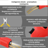 W zestawie znajdują się szczypce, nóż użytkowy oraz różne typy zszywek dopasowanych do każdego rodzaju pęknięć – prostych, zakrzywionych i kątowych.