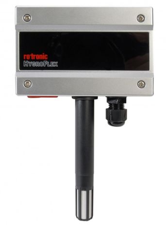 Przetwornik wilgotności i temperatury firmy Rotronic, przeznaczony do montażu naściennnego lub kanałowego.