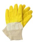 Rękawice ochronne powlekane zakończone ściągaczem. - wykonane z dzianiny - od strony chwytnej powlekane szorstkowaną gumą w żółtym kolorze - odporne na ścieranie - zapewniają dobrą chwytność przy przenoszeniu przedmiotów - stosowane w budownictwie oraz przemyśle transportowym - potocznie zwane grip