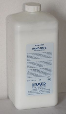 Pianka HAND -SAFE art.nr 4450 jest wodoodporna i chroni przed działaniem środków czyszczących, kwasów, ługów, rozpuszczalników, olejów, smół, bitumin, atramentów, lakierów, farb i pigmentów oraz przed cementem, wapnem, sadzą, klejami, jak również innymi substancjami szkodliwymi i czynnikami drażniącymi.Obszary użycia: HAND -SAFE stosuje się w szpitalach, domach spokojnej starości, hotelach, restauracjach, warsztatach samochodowych i mechanicznych, przemyśle żywnościowym, chemicznym, i w zakładach przerobu oleju mineralnego, jak również w rzemiośle i przemyśle ciężkim.HAND -SAFE stosować przed rozpoczęciem pracy. Nanieść pianę na dłoń i dokładnie wcierać w ręce przez 2 minuty (nie zapominając o kciukach i opuszkach palców).HAND -SAFE przenika głęboko do porów skóry i tworzy beztłuszczowy i niewidzialny ochronny film. Zanieczyszczenia dłoni po zakończonej pracy znacząco łatwiej dają się obmywać. Aerozol 150ml- wydajność do 160 użyć. Producent HWR-CHEMIE GmbH z Bawarii.