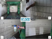 Czyszczenie sadzawek, zbiorników i fontann z pompą obiegową : roztwór stosować w zależności od stopnia zabrudzenia i za pomocą spryskiwacza ciśnieniowego albo manualnie nanieść, pozostawić najdłużej 5 minut i urządzeniem HD albo szczotka zmyć duża ilością wody, czynność w zależności od stopnia zwapnienia powtórzyć, NIE STOSOWAĆ DO POWIERZCHNI MARMUROWYCH. Gorąca woda wzmacnia działanie czyszczenia.